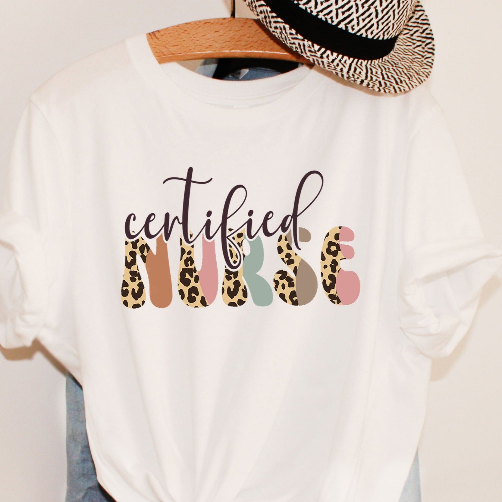 Certified Nurse Shirt, Boho Leopard RN CNA Graduation Day TShirt, Nurse Life Nursing School Grad Tee Crew Team T-Shirt Sister Birthday Gift