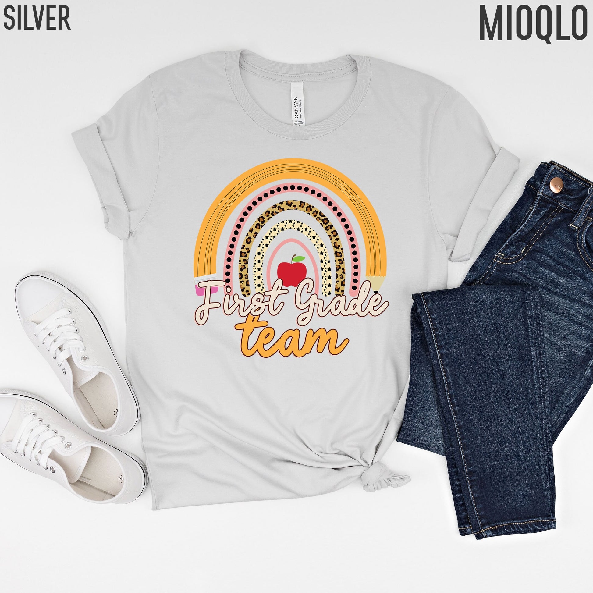 First Grade Team Shirt, Custom Grade Teacher TShirt, Custom Grade Level Team Gift Rainbow Color Tee, Elementary Teach School Team Crew Squad