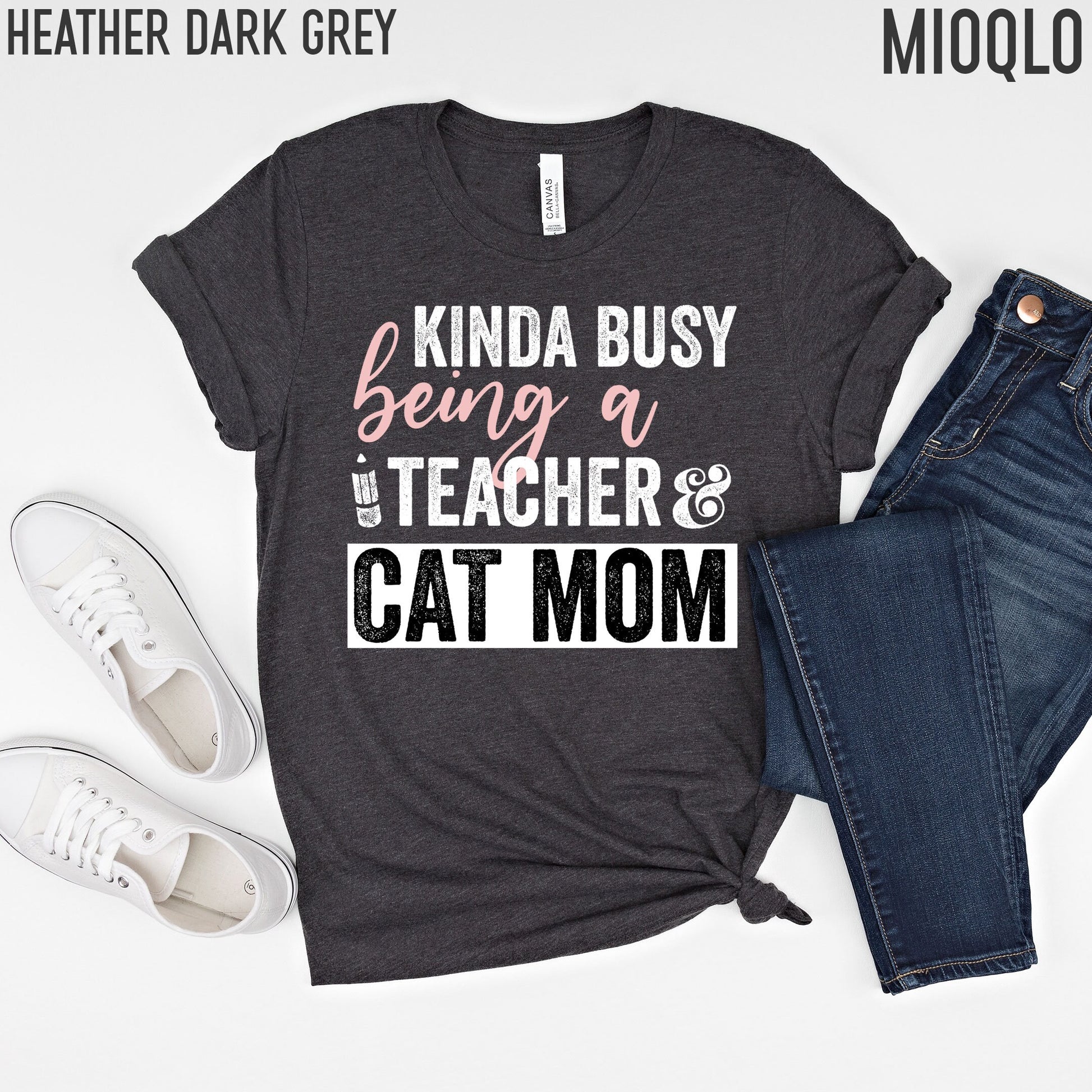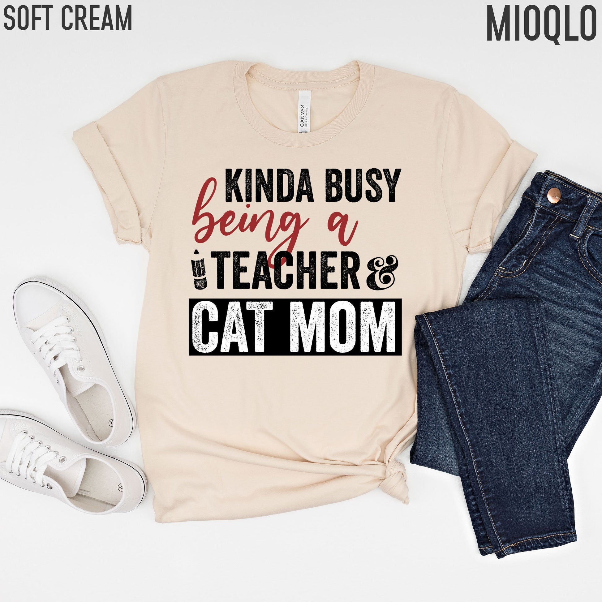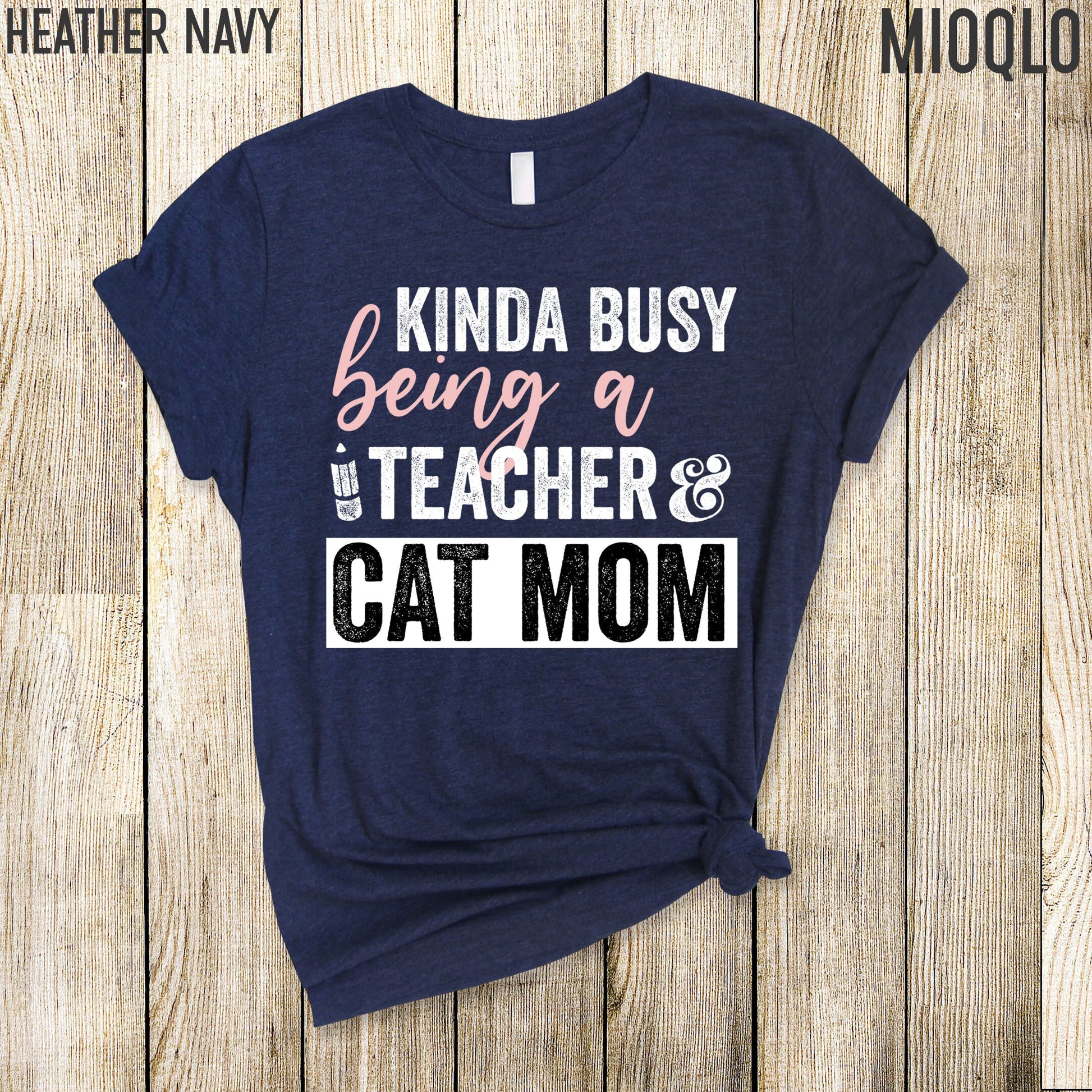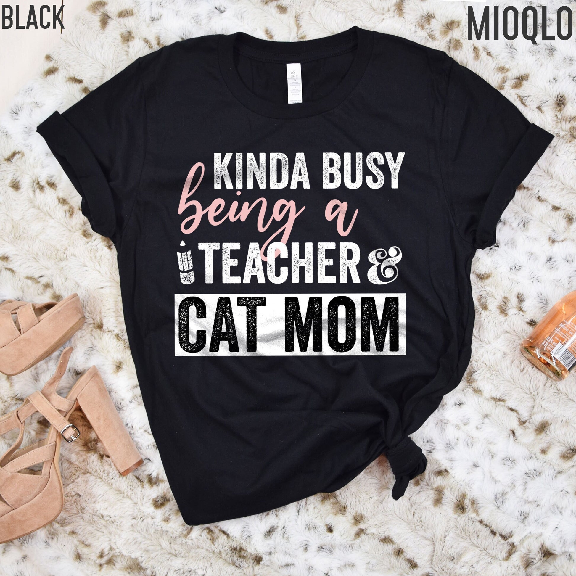 Kinda Busy Being A Teacher And Cat Mom Shirt, Teacher Tee, Teacher With A Cat Lover Tee, Animal Lover, Kind of, Funny Teacher Appreciation