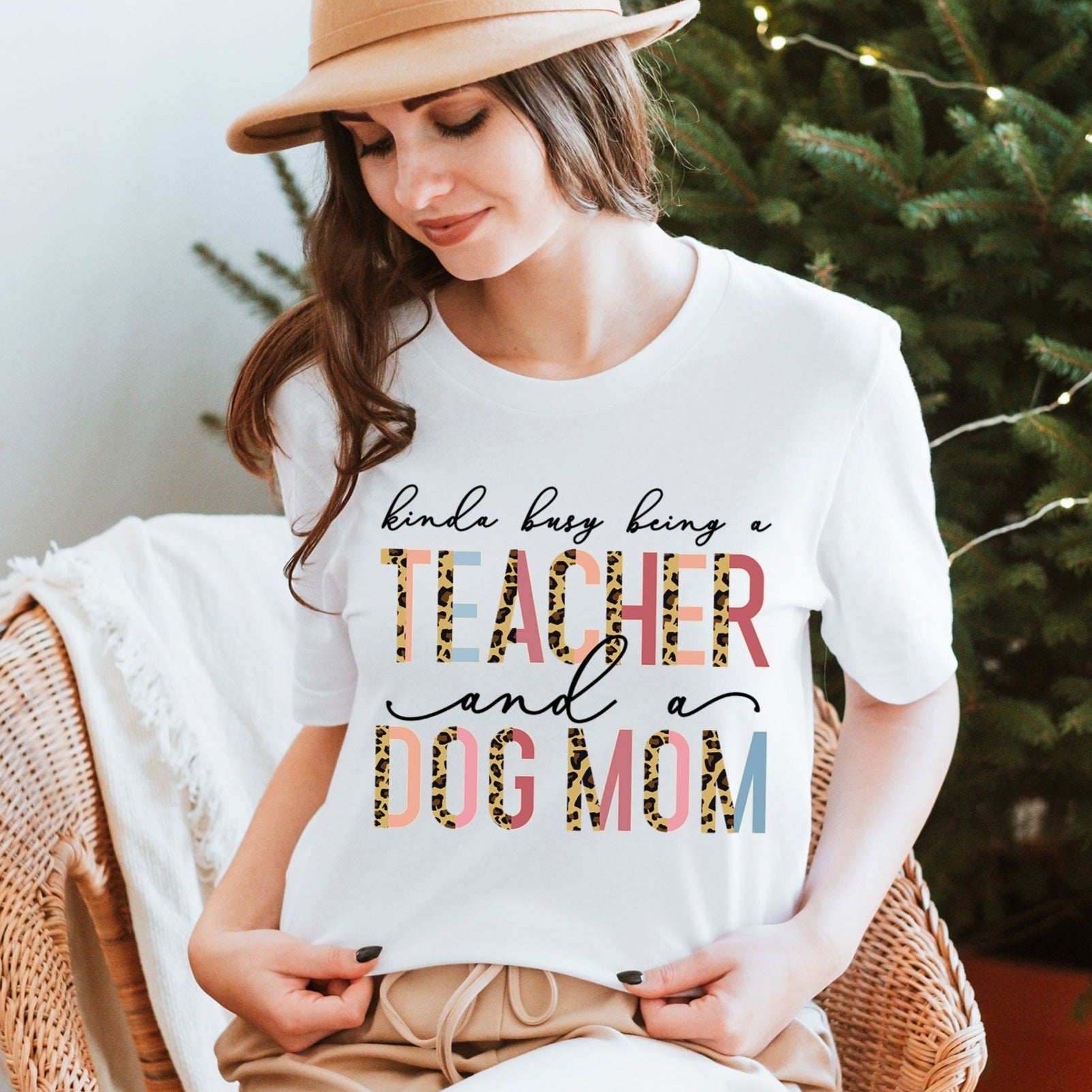 Kinda Busy With Being A Teacher And A Dog Mom Shirt, Teacher Tee, Dog Lover Tee, Animal Lover, Kind of, Half Leopard Teacher Appreciation