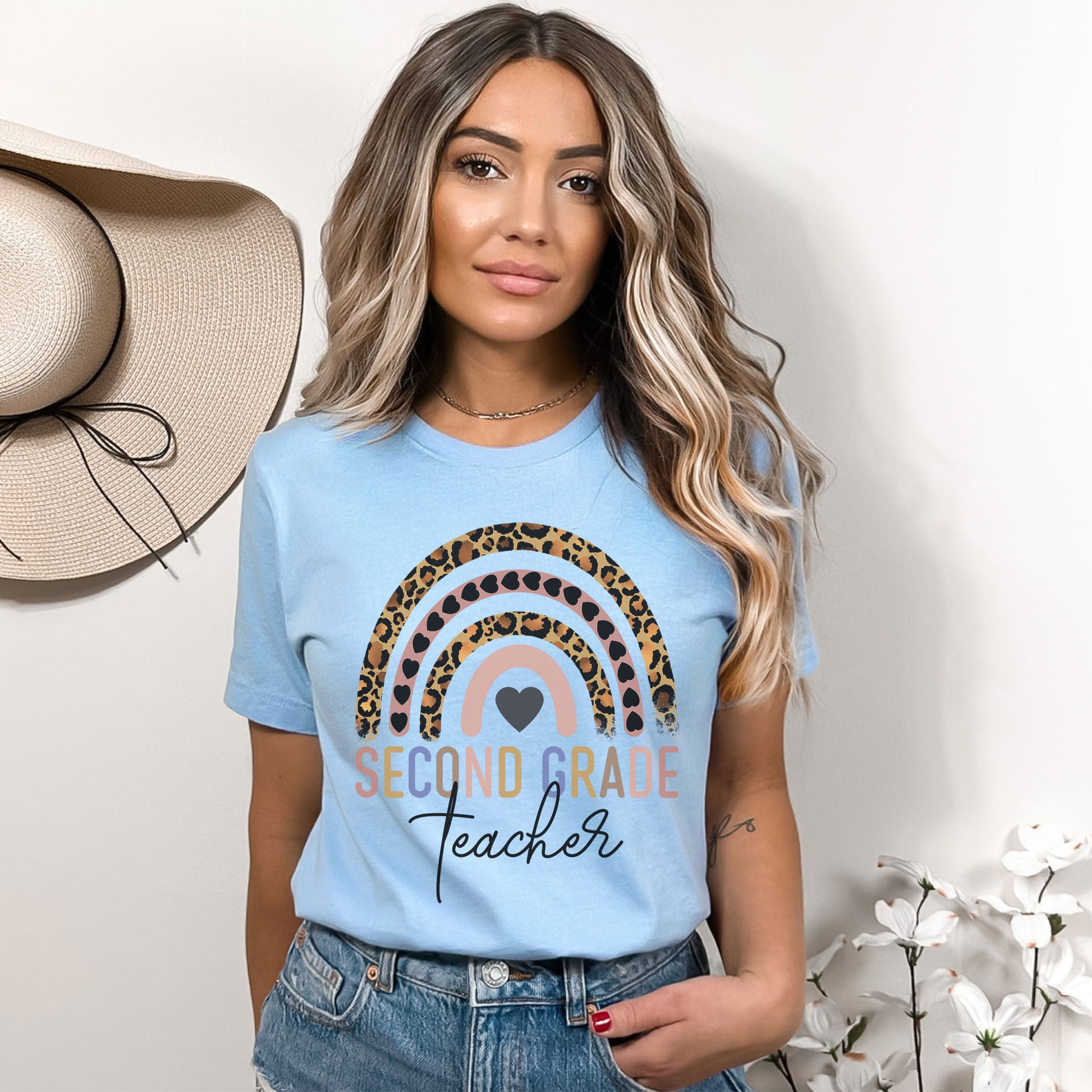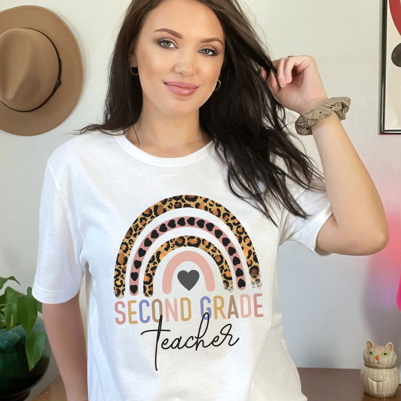 Second Grade Teacher, 2nd Grade Teacher Shirt, Boho Rainbow Leopard Teacher Tee, Gift For Teacher, Elementary Teacher, Hello Second Grade